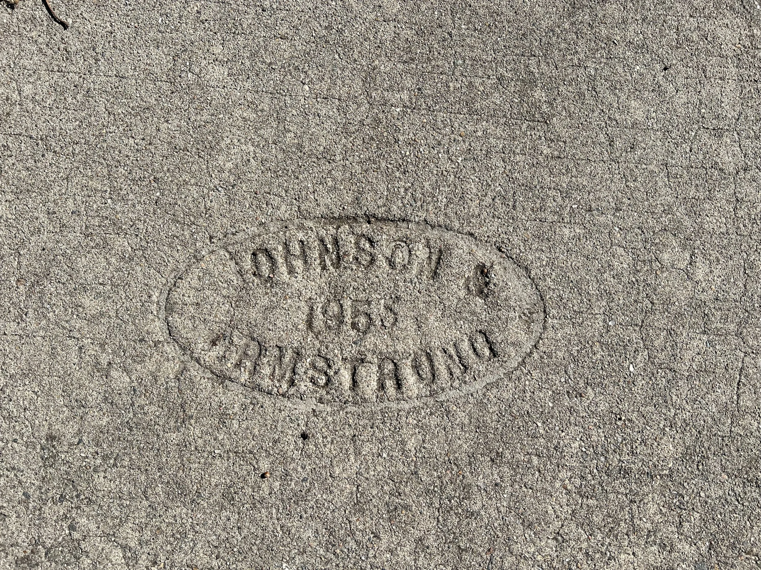 C. M Hoppes with a repeat nine years apart. It looks like the ‘74’ was drawn by hand while the 65 was not. I would love to see a version of the metal stamp that concrete companies use and how they integrate the last two digits of the year.